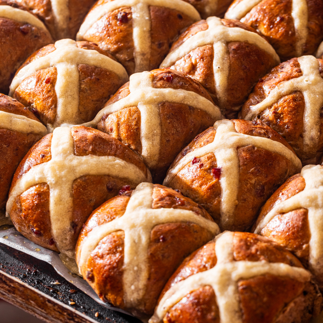Our fresh, moist Hot X Buns bring your favourite aromatics, Cinnamon, Nutmeg & Cloves, packed with juicy Sultanas, Cranberries & Candied Orange, coated with an Orange & Maple glaze and topped with a timeless 'X'.